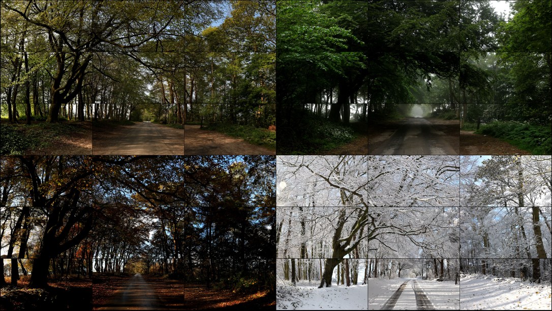 « The Four Seasons, Woldgate Woods (Spring 2011, Summer 2010, Autumn 2010, Winter 2010) » 2010-2011 © David Hockney