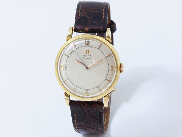 La montre que nous vous présentons chez Yellow Peacock s’inscrit dans les débuts de la marque en tant que spécialiste du mouvement automatique, puisqu’il s’agit d’un mouvement « à butée ». La masse entraînant le ressort est arrêté par des taquets, n’effectuant donc pas une révolution complète comme c’est le cas pour nombre de modèles aujourd’hui. Ce modèle des années 40 tout en simplicité mais néanmoins élégant se compose d’un cadran en ivoire et d’une couronne en or 750 millièmes, de même que la boucle ardillon. Elle relève ainsi du domaine des montres de luxe.