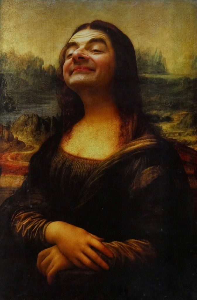 Celui-ci est d’autant plus accentué lorsque la figure de Mr. Bean est fusionnée à celle de Mona Lisa. Les éléments qui font la renommée de l’oeuvre sont substitués dans un effet comique : le sourire mystérieux devient jovial, le regard hypnotisant se fait rieur. L’icône classique peinte par Léonard de Vinci est totalement transformée mais néanmoins parfaitement reconnaissable.