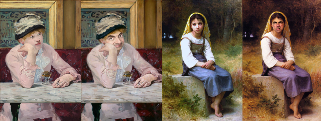 Le visage de celui-ci est intégré dans une multitude d’oeuvres incontournables, telles que Méditation de William Bouguereau, ou encore La Prune d’Édouard Manet. L’association d’une icône télévisuelle des années 1990, à l’humour potache et naïf, avec un corpus d’oeuvres aussi célèbres qu’emplies de gravité crée un décalage humoristique qui séduit le spectateur.