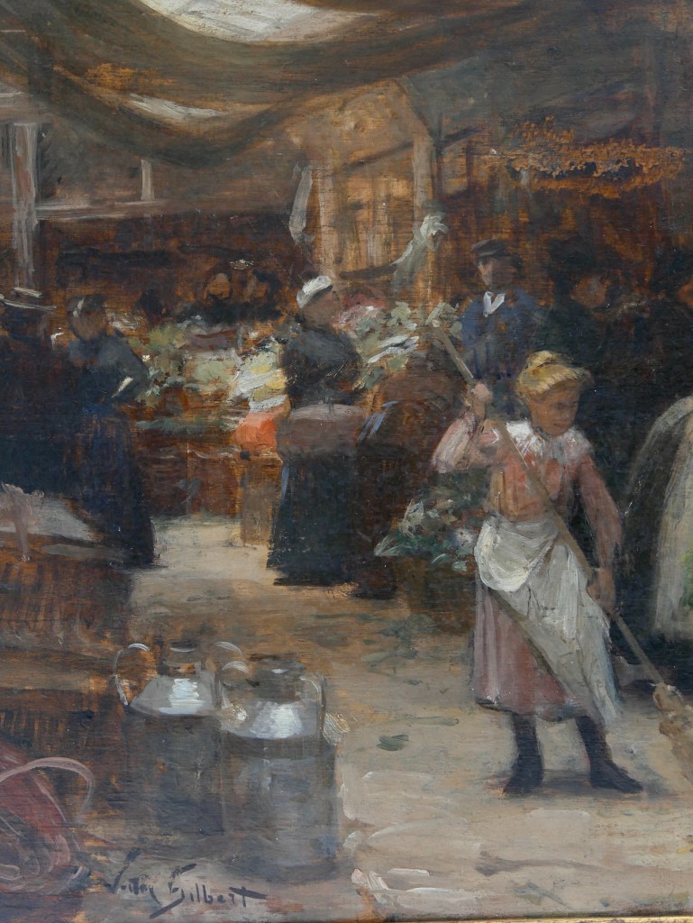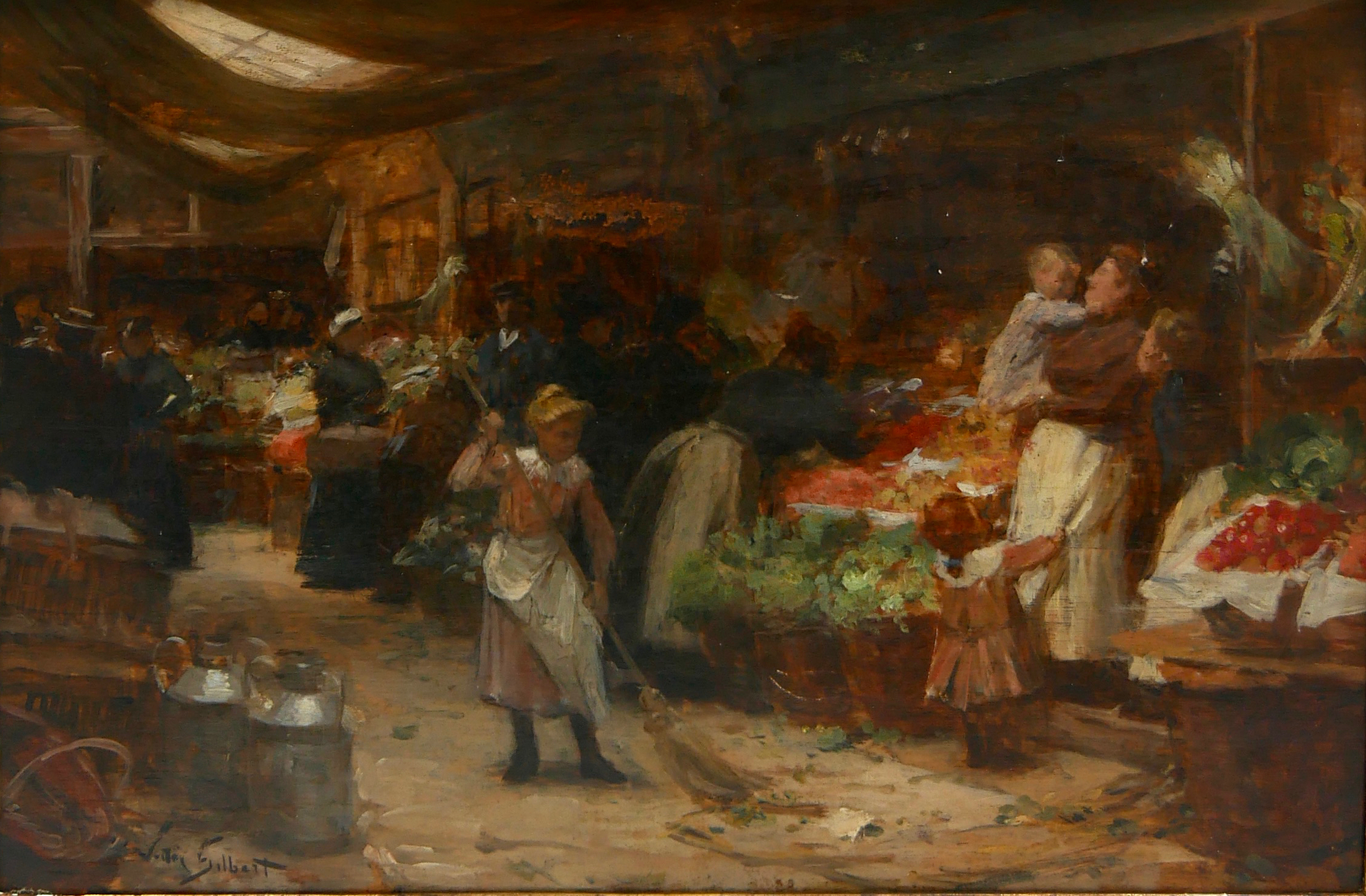 Dès ses débuts au Salon, probablement influencé par ses maîtres, le jeune peintre âgé de 26 ans montre un goût prononcé pour le naturalisme et se tourne très rapidement vers la peinture de genre. Témoin de son temps, Victor Gilbert s’applique à reproduire la vie parisienne durant la Belle Époque. Il s’intéresse tant aux mondanités qu’à la classe ouvrière, des travailleurs des Halles aux marchés de Paris et de Province.