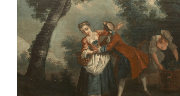 Notre vente du 28 février propose une huile sur toile reprise d’une gravure de Nicolas de Larmessin elle-même inspirée de l’Automne de Lancret.