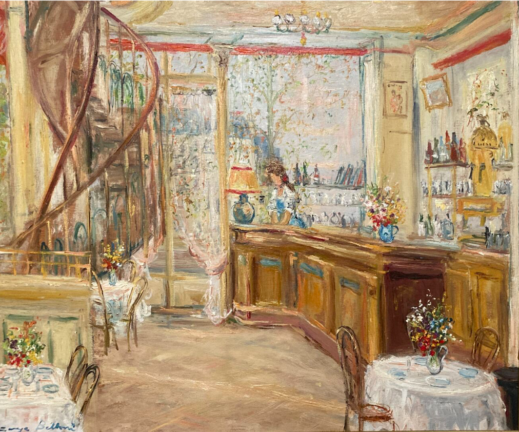 Belloni peint également des scènes d’intérieur comme l’Intérieur de café parisien à retrouver dans le catalogue de notre vente en ligne.