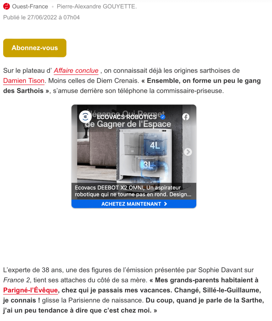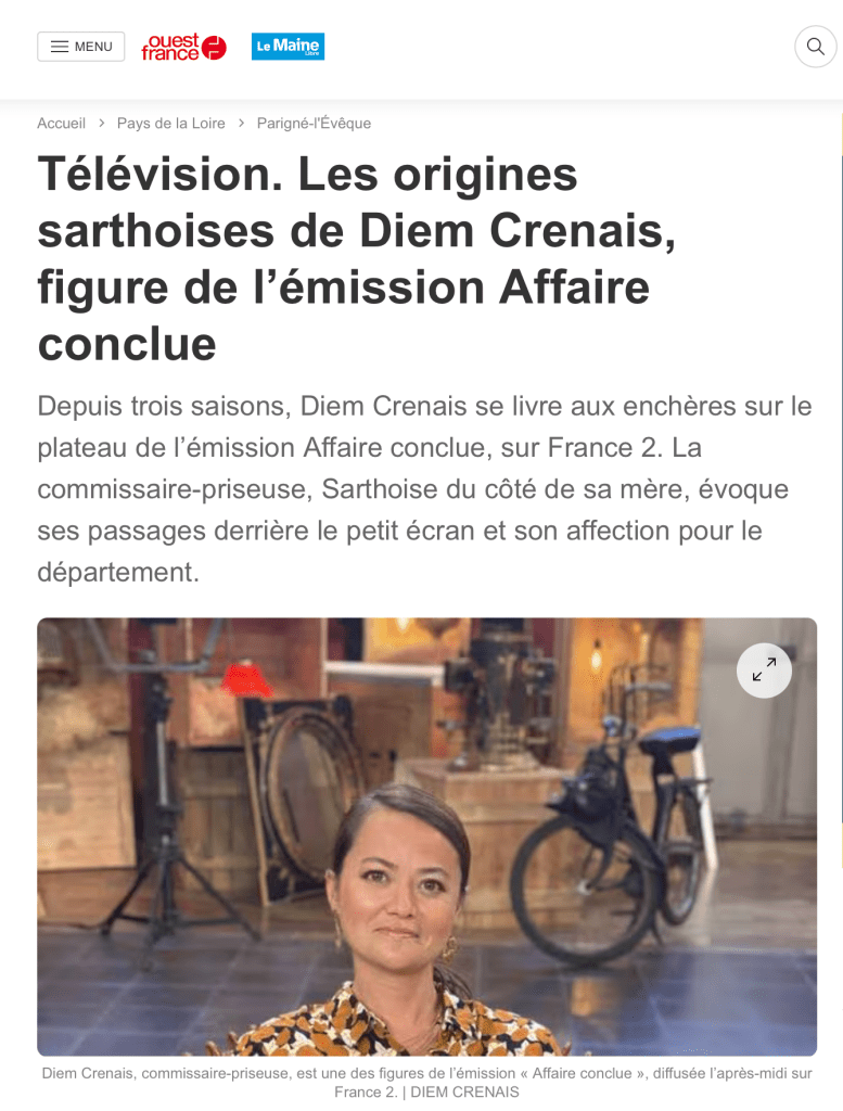 Retrouvez Diem Crenais notre commissaire-priseur tous les jours dans l’émission Affaire Conclue sur France 2