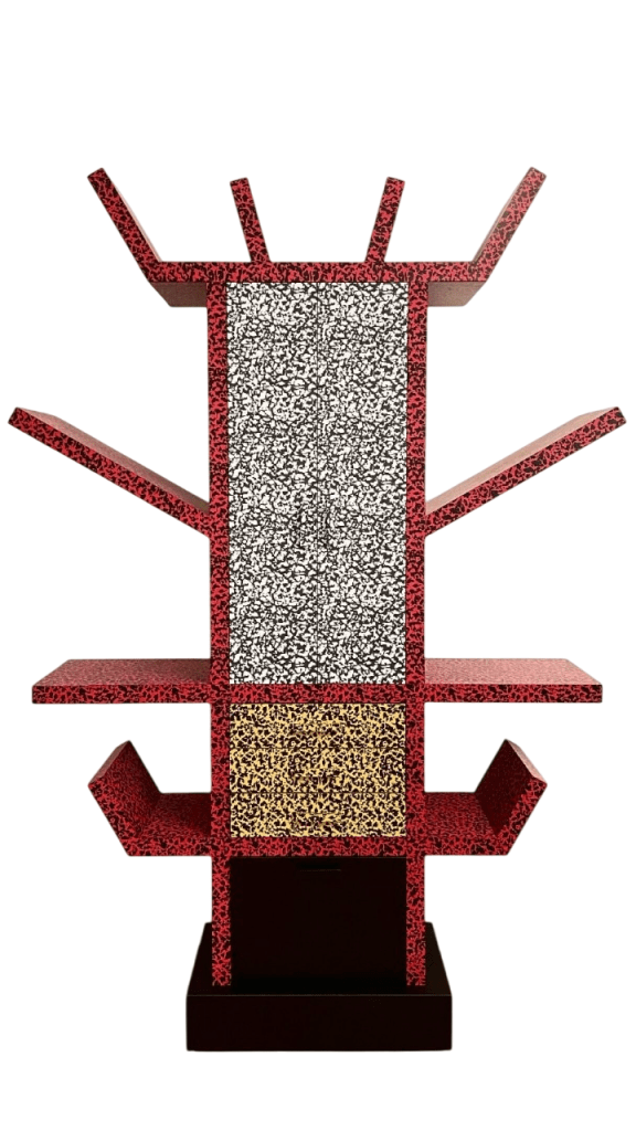 Ettore Sottsass (1917-2007) est un nom incontournable du design du XXe siècle. Fondateur du mouvement Memphis en 1981, ce designer italien a révolutionné la manière de penser l’ameublement et l’architecture intérieure. Alliant couleurs vives, formes géométriques audacieuses et une approche ludique du design, il a créé des pièces qui brisent les conventions esthétiques traditionnelles. Parmi celles-ci, les célèbres Bibliothèque Casablanca et le miroir Ultrafragola.
