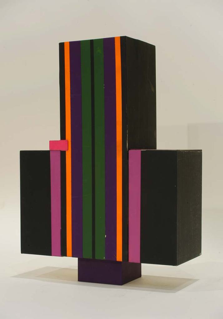 Né en 1917, Ettore Sottsass débute sa carrière en tant qu’architecte avant de se tourner vers le design industriel. Il s’inspire des avant-gardes modernes en architecture, mais aussi en peinture et en sculpture. Maquette Spatiale (1946-1947) sera la seule sculpture témoignant de cette période, marquée par un affranchissement au rationalisme. D’autre part, sa fascination pour l’Inde définira son esthétisme, notamment dans les Superbox, des armoires colorées aux matières stratifiées, éditées en 1966 par Poltronova. Dans ses créations il privilégie le sens à la forme, de sorte à donner un aspect rituel à un meuble fonctionnel.
