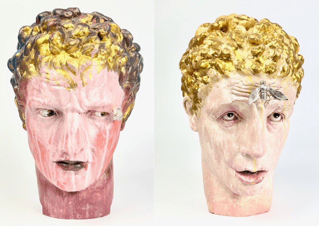 L’artiste intègre des éléments modernes comme des insectes, une touche d’ironie qui s’impose dans l’expression même de ces visages déformés ou grimaçants. Ses sculptures sont à la fois un hommage aux formes classiques et un nouveau regard sur la superficialité de notre époque.