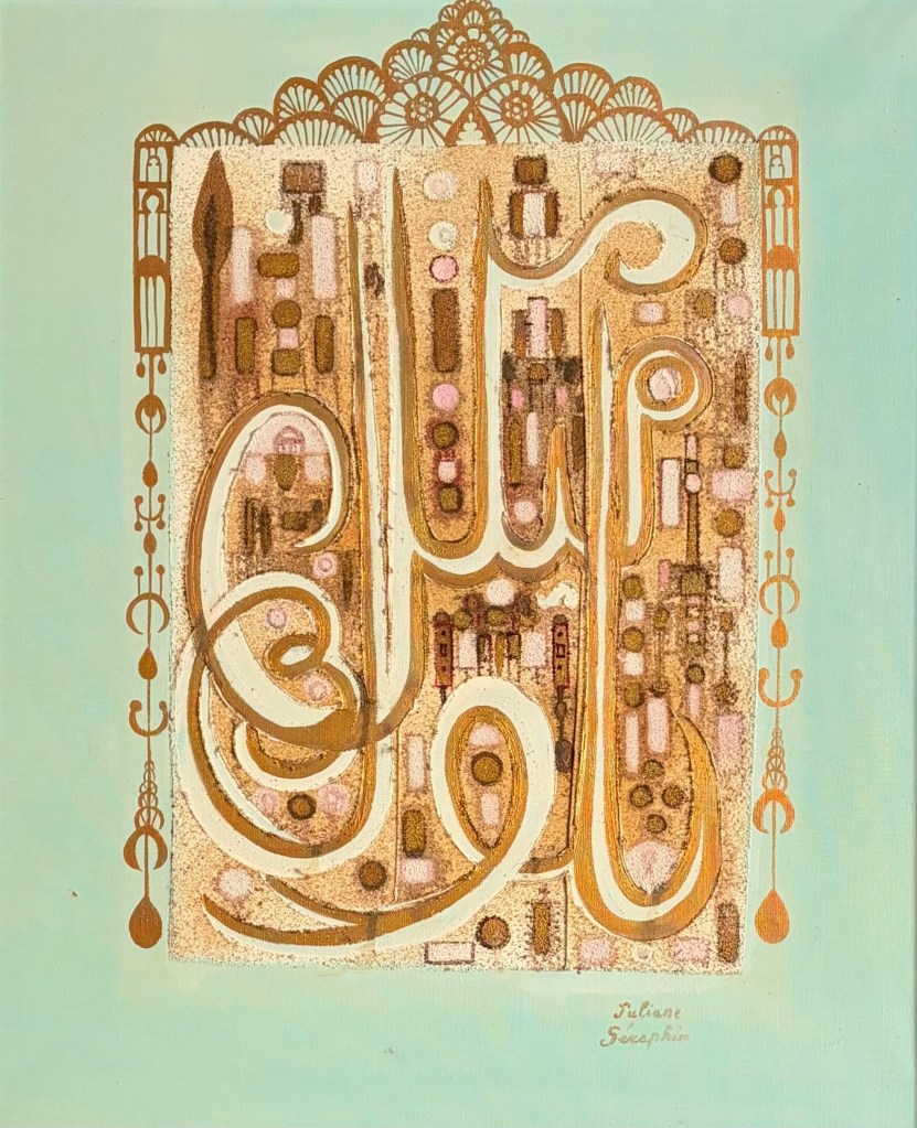 Née à Jaffa en 1934, l’artiste palestinienne Juliana Seraphim (1934- 2005) appartient à une génération dont le destin est profondément marqué par les bouleversements du Moyen-Orient au XXe siècle. En 1948, à la suite de l’exode palestinien, elle quitte sa ville natale avec sa famille et trouve refuge au Liban. Cette expérience fondatrice, bien que rarement abordée de manière frontale dans son œuvre, constitue l’arrière-plan silencieux de toute sa trajectoire artistique.